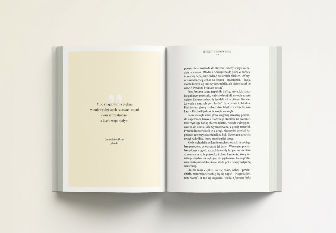 To książka o tym, że życie może być sztuką, małe sprawy – źródłem wielkiej radości, a piękno jest wokół nas, wystarczy zatrzymać się na chwilę, popatrzeć… O prawdziwym szczęściu, tym, co czyni kobietę piękną, sposobach wydobywania magii z szarej codzienności. Zresztą sama spróbuj, przekonaj się… Możesz zacząć od małej filiżanki espresso.